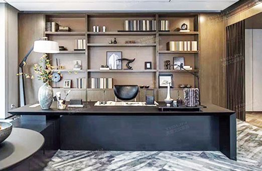 本案擁有辦公家具,休息區,辦公區,娛樂區等功能分區,多種風格表現要統一格調,對整體的一個把控完美的設計。整體采用大理石與原木色為主色調,勾勒出端莊與時尚的線條美。在該項目中,辦公家具陳設講究對稱,重視文化意蘊,更具有文化韻味和獨特風格。