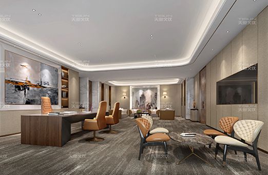 本案利用茶座,休息區,辦公區,娛樂區等功能分區,與客戶的建筑結構相呼應,有機地結合起來。合理而有效地利用空間,使辦公空間的效益最大化,因地制宜,量體裁衣,整體空間的設計感很強。在該項目中,家具陳設講究對稱,重視文化意蘊;配飾擅用字畫,辦公家具、精致的工藝品加以點綴更顯主人的品味與尊貴,更具有文化韻味和獨特風格。