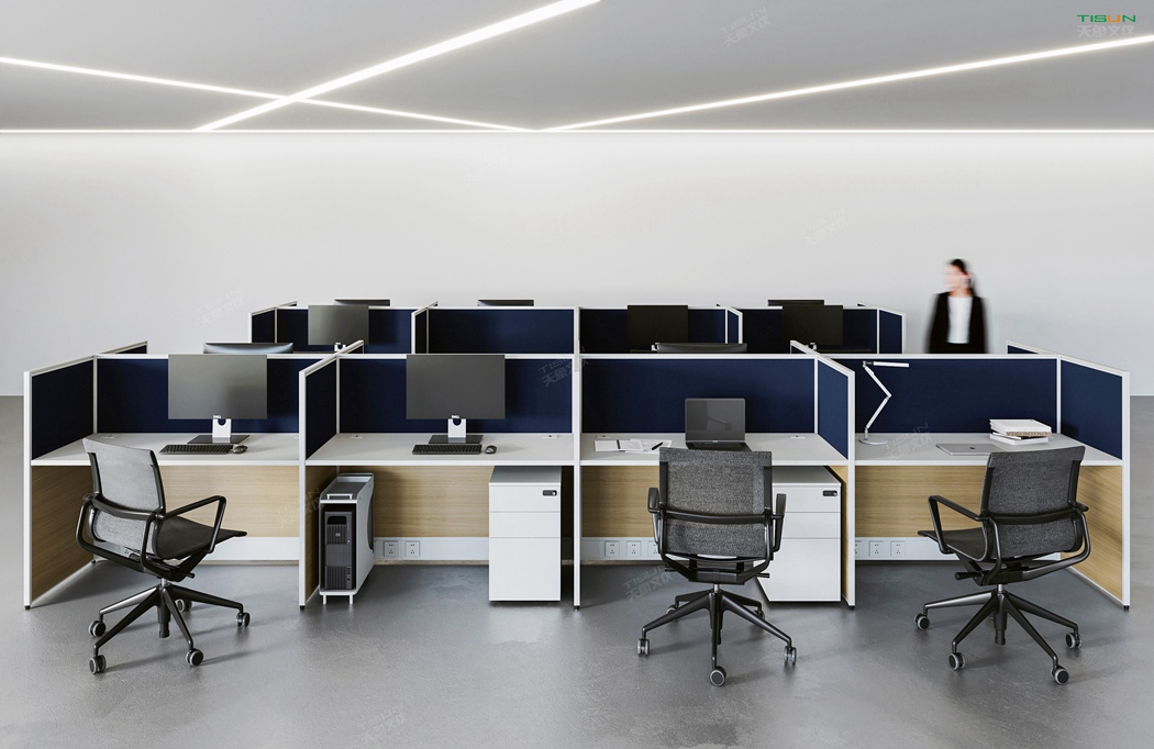 境由心造,思想領域超越于空間,員工桌簡約的設計展現了現代都市感,真心的設計,帶著一種生活的準確度,精確的敲擊,在工作與生活中完美呈現。這種輕松、和諧、明快、環境趨向人格化,帥氣十足,專業可靠。